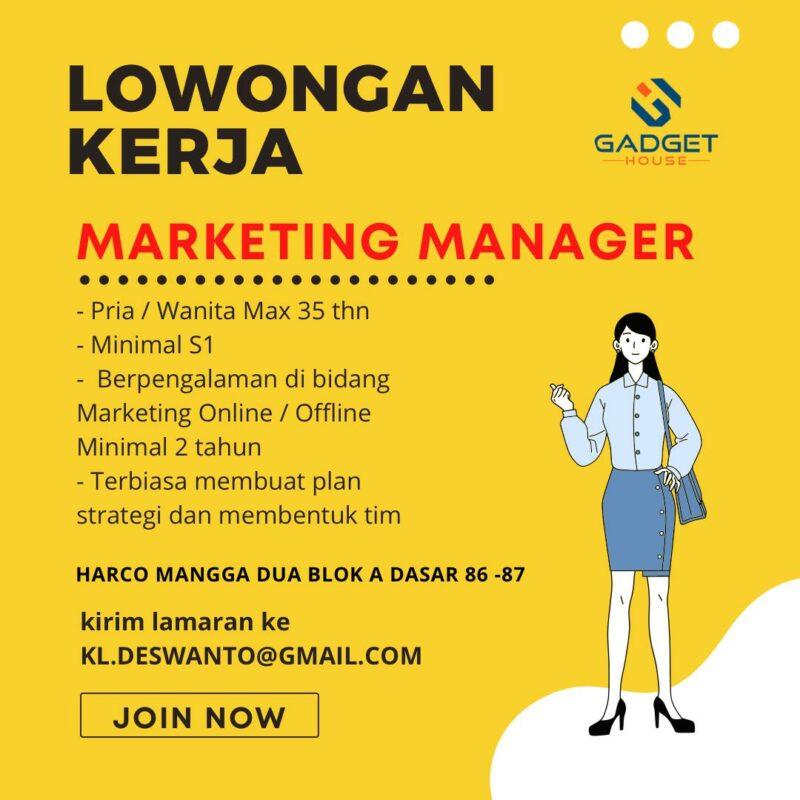 Lowongan Kerja Marketing Manager Marketing Di Gadget House Jakartakerja